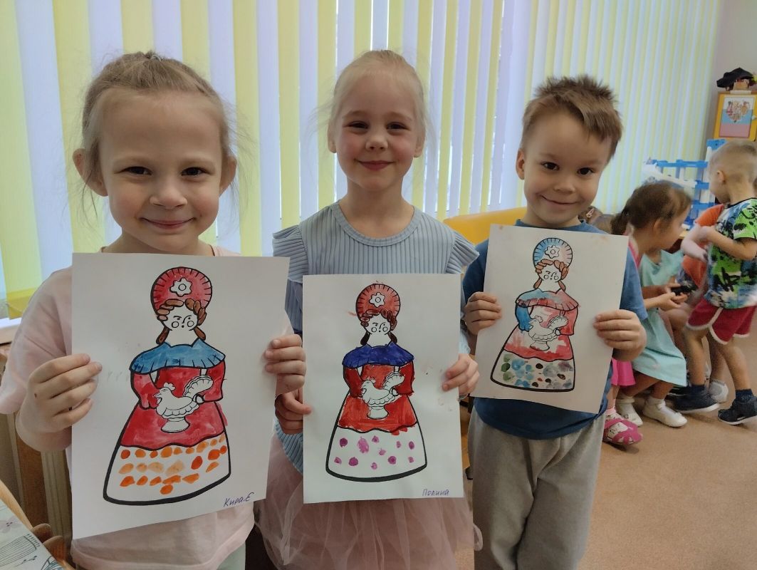 Узнали о Гжели и расписали красивые чашечки, познакомились с Дымковской игрушкой, а так же с карельской росписью, досочки получились в виде аппликации!